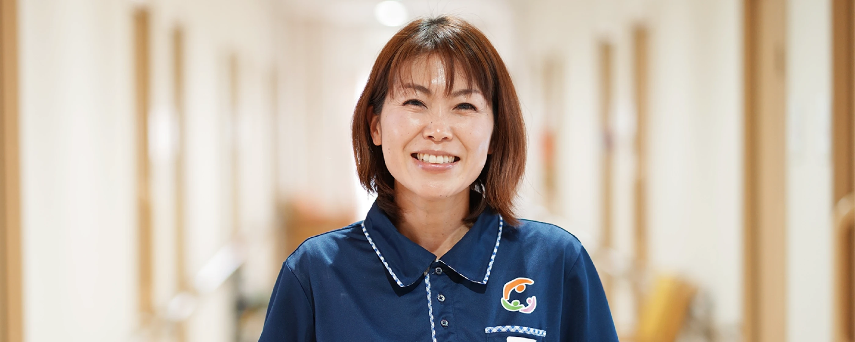 まず、スタッフみんながアットホームな雰囲気を作っていることです。施設長をはじめとして、とても明るく、事務所のスタッフも挨拶をしっかりしています。「感謝・地域・みんな仲よく」という理念があり、本当に仲が良いんです。上司もとても話しかけやすく、相談にも乗っていただけますし要望も伝えやすい環境です。入居者様にとってここが「おうち」になるからこそ、スタッフの雰囲気の良さは大切だと感じています。
