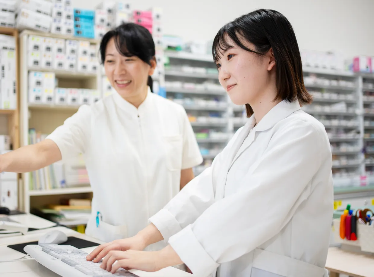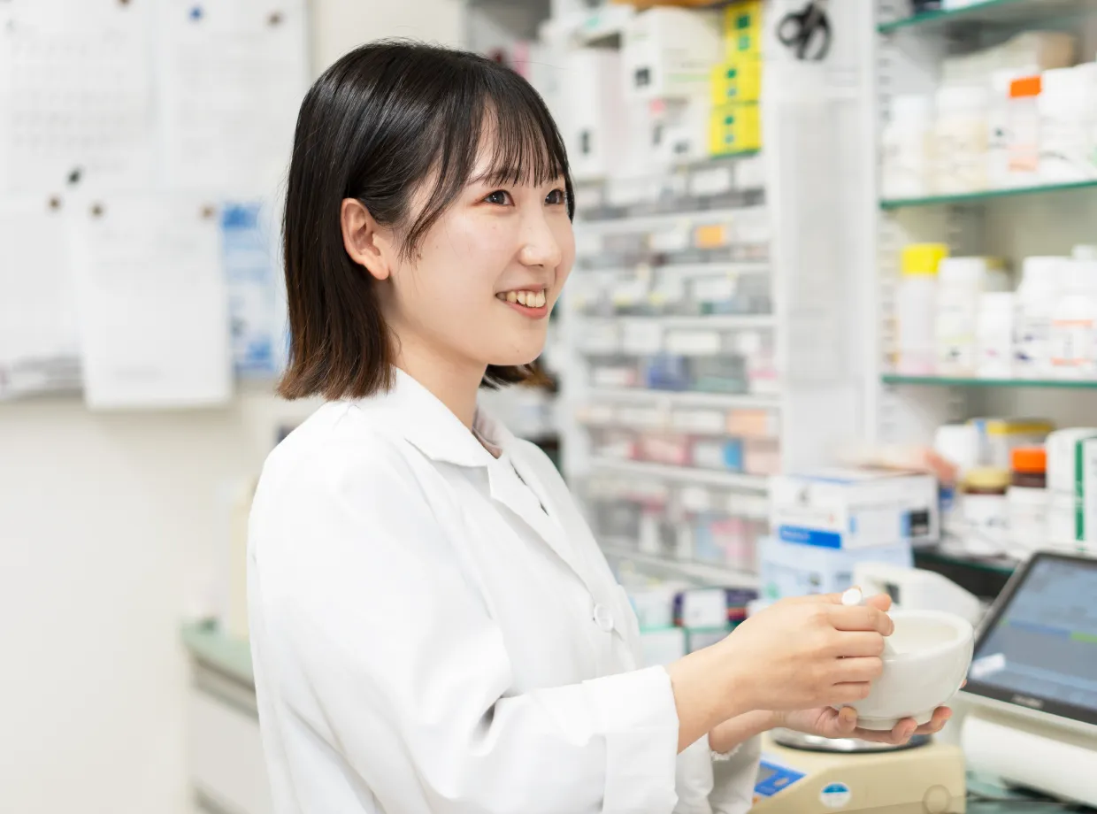 就職活動中は、色々な薬局さんの方を見学させていただいたんです。今、勤めているこの薬局も見学する機会があって、その際に薬局長の方とお話しさせていただきました。ウマが合うというか好きなことも合うと感じ、ここで働きたいと志望しました。実際に働いてからも薬局長と話が合いますし、他の方も優しくて働きやすい環境だと感じています。みなさん、教育もしっかりしてくださるしサポートも手厚かったので、最初から働きやすい環境でしたね。